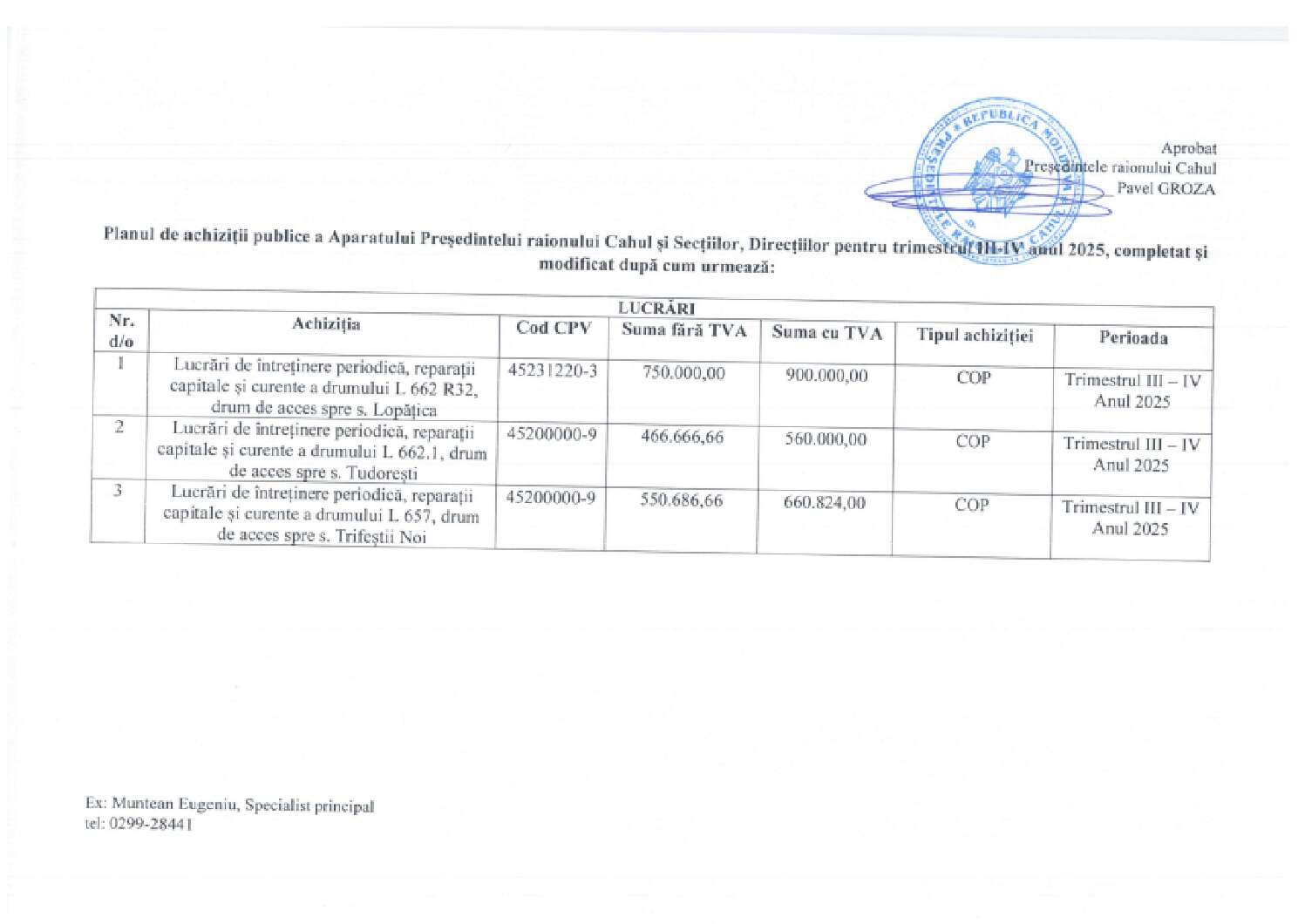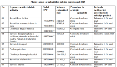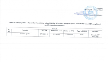 Achiziții publice Planul de achiziții publice pentru Trimestrul IV, anul 2024, completat și modificat